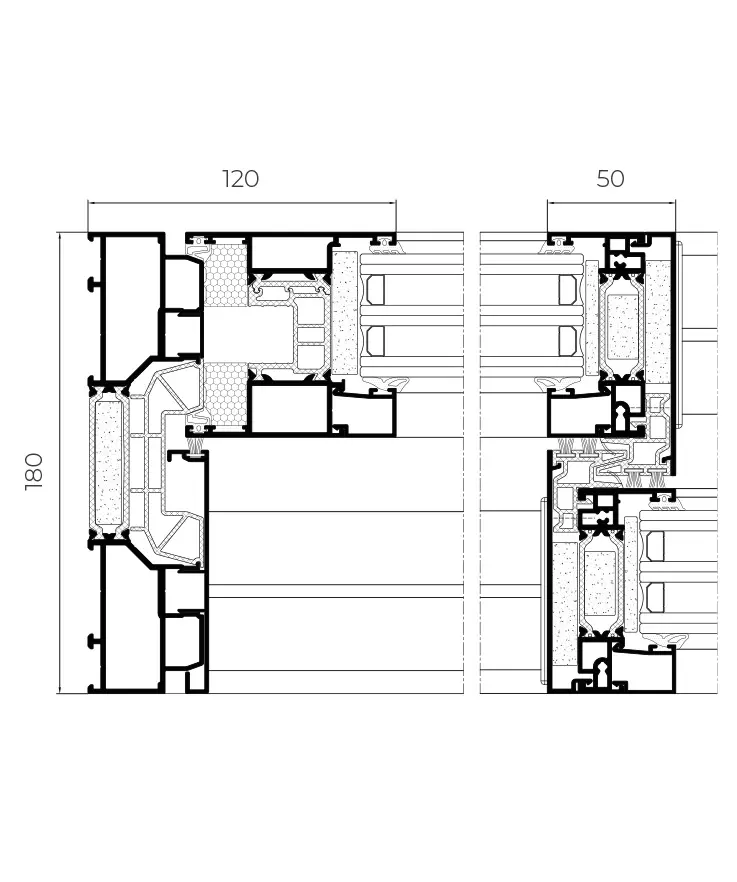 Новата система за повдигане и плъзгане 4600 Plus позволява покриването на големи отвори, като същевременно осигурява изключителна топлоизолация. Дълбочината на крилото от 80 мм и специалните полиамиди позволяват постигане на коефициент на топлопреминаване Uw от 0,65 W/m²K, което я прави една от най-добре представящите се плъзгащи системи на пазара. Освен това, видимата периметърна секция е намалена до само 120 мм, с централен стълб от само 50 мм, което увеличава остъклената площ и подобрява навлизането на естествена светлина във вътрешните пространства.