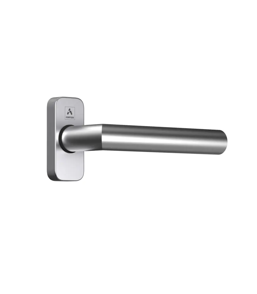 » Минималистичен дизайн от неръждаема стомана » Дизайн с малко лого на CORTIZO » Пълна адаптивност към скоростната кутия и със системата за многократно заключване » Предлага се и във версия с врата