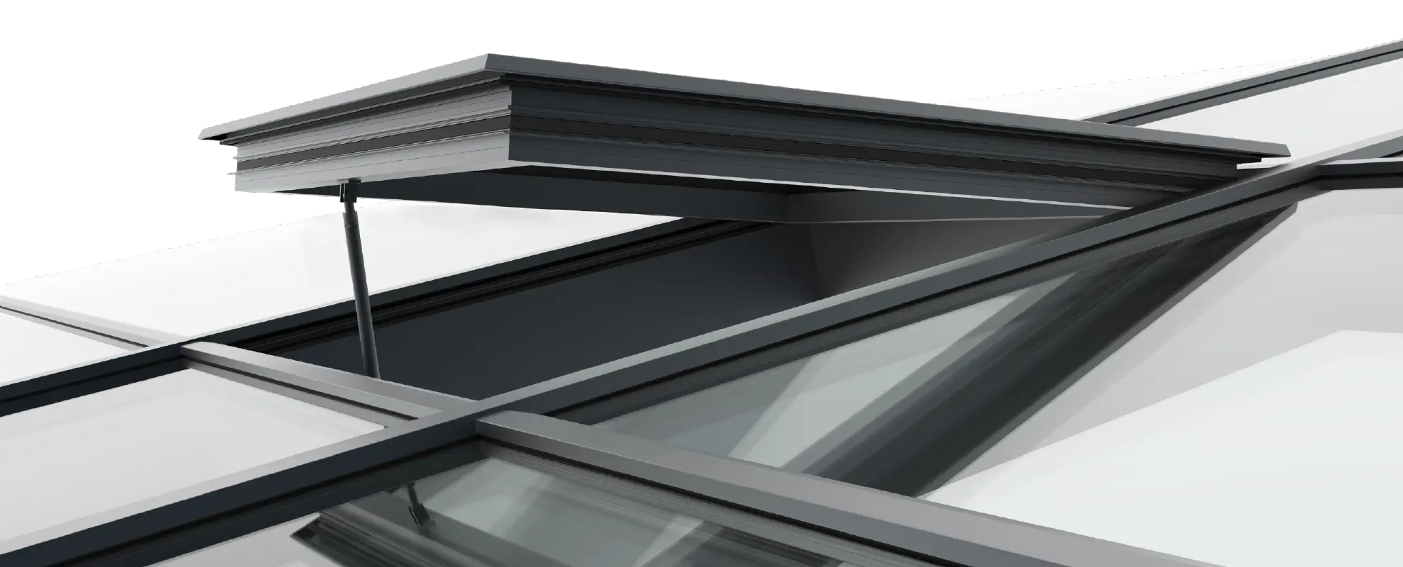 The new SHEV smoke and heat exhaust ventilation system consists of a structure formed by a frame and an integrated motor that enables opening and closing operations. In the event of a fire, it activates automatically to allow natural upward evacuation of heat and smoke. Its main functions are to improve visibility and reduce heat build-up inside the building, thereby minimizing the risk of smoke inhalation and facilitating occupant evacuation.